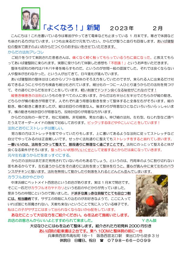 2023年 2月 からだの法則あれこれ 痛くなく軽く触ってもらっているうちに楽になった。
